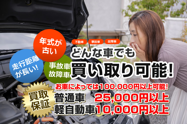廃車、事故車、水没車、不動車、車検切れ車、多走行車、ディーゼル車、トラック …